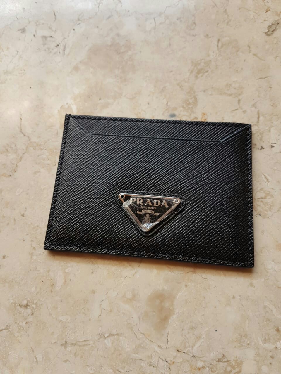 Prada concentrates on retailing luxury handbags, wallets, perfumes, shoes and other accessories for men and women worldwide. Brushed leather chain card holder. Box and original receipt price: